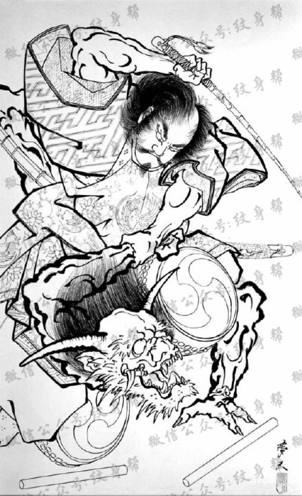 传统人物线稿_一组9张优秀的传统人物纹身手稿图案
