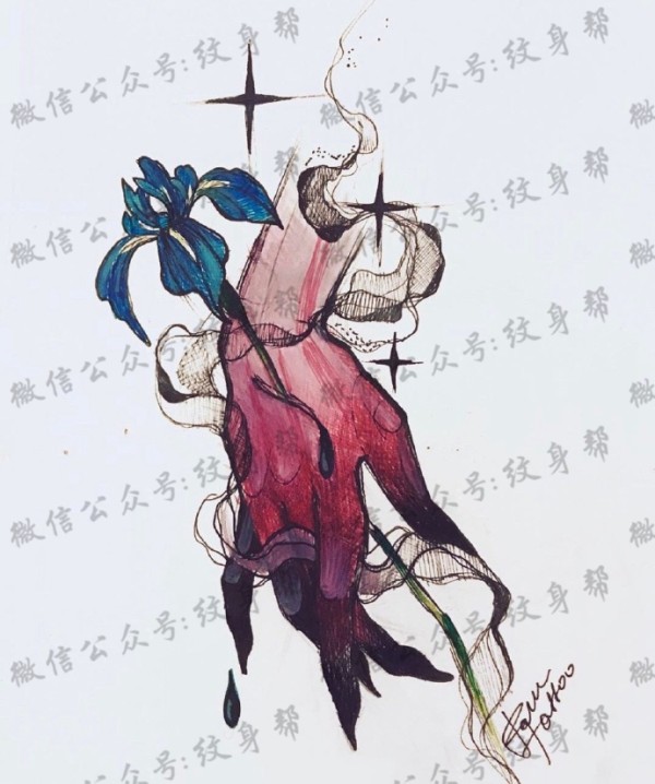 女生喜爱的简单手绘纹身图案来自于纹身师安雅