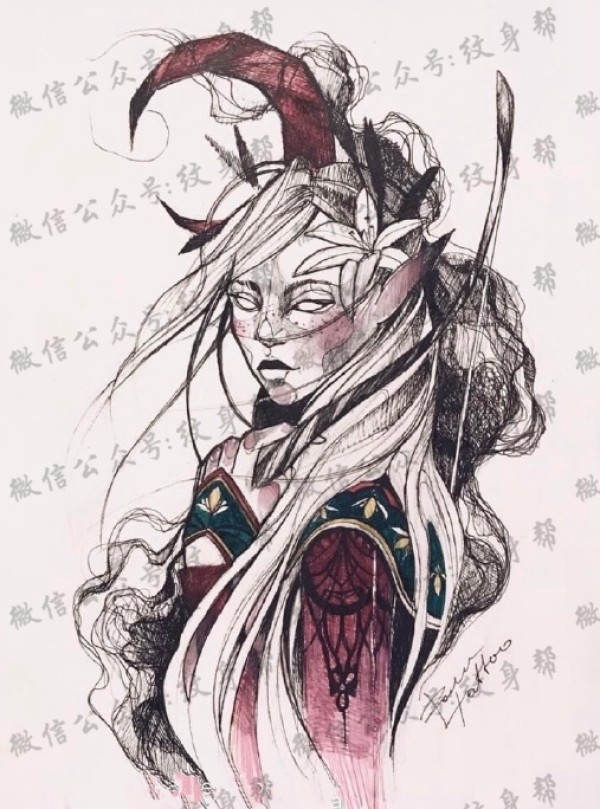 女生喜爱的简单手绘纹身图案来自于纹身师安雅