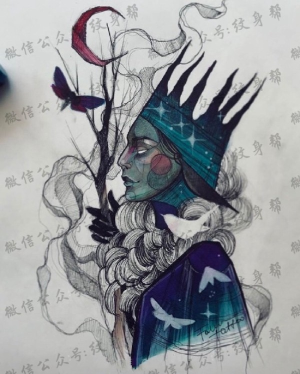 女生喜爱的简单手绘纹身图案来自于纹身师安雅