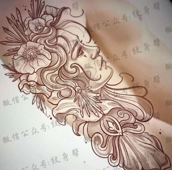 newschool包臂线稿_9张漂亮的newschool包臂手稿纹身图案