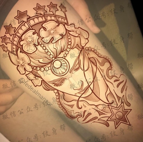 传统艺妓般若纹身图案手稿