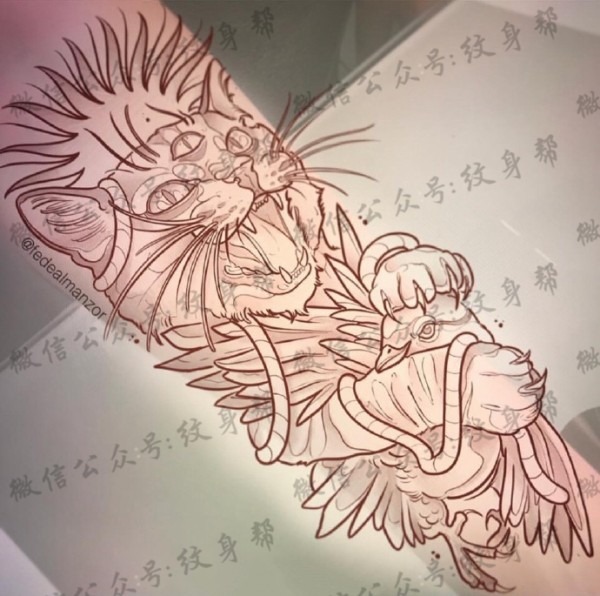 半甲唐狮手稿 传统的9款唐狮主题半甲纹身手稿图片