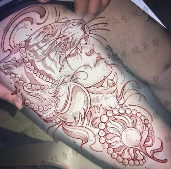 半甲唐狮手稿 传统的9款唐狮主题半甲纹身手稿图片