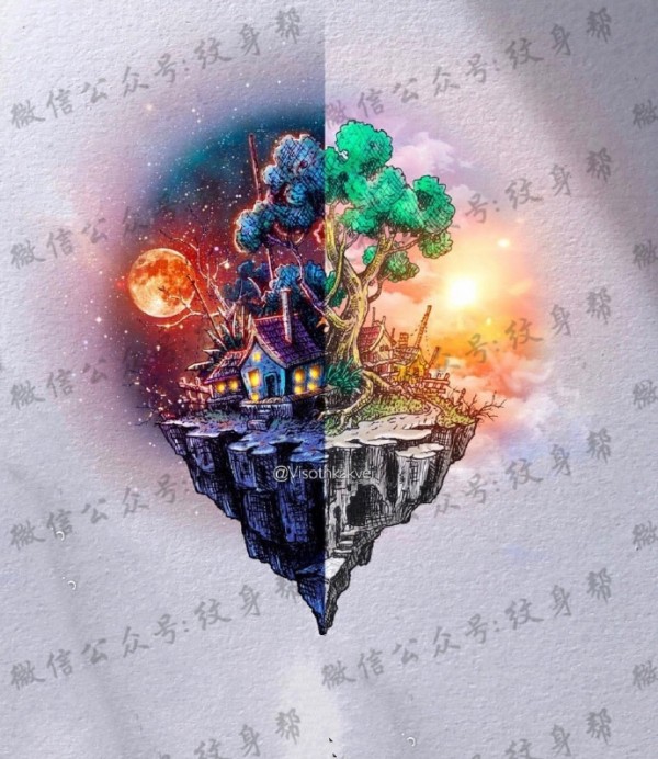 风景纹身手稿_14张创意风景纹身手稿图案