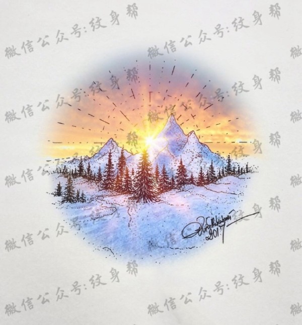 清新淡雅 北京newtattoo纹身店陈洁山水水墨纹身 (一)