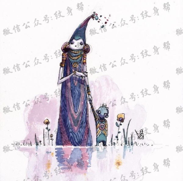 水彩插画手稿_一组23张精美水彩插画纹身手稿素材图案
