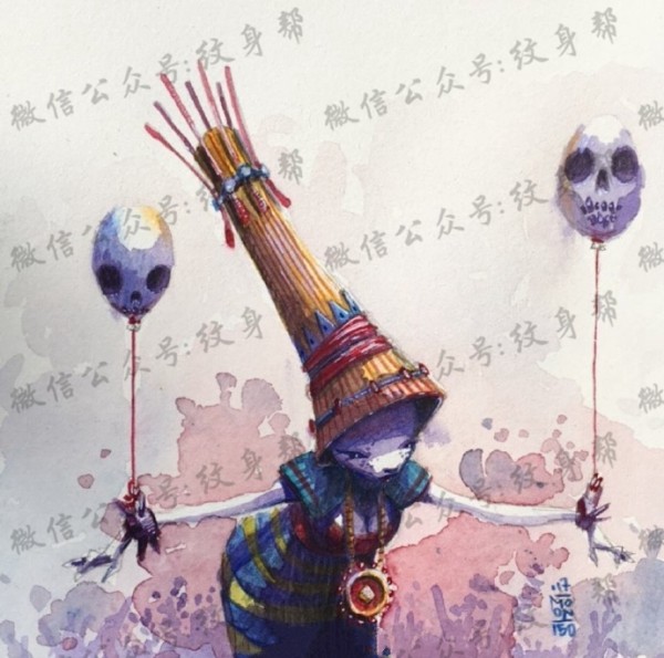 水彩插画手稿_一组23张精美水彩插画纹身手稿素材图案