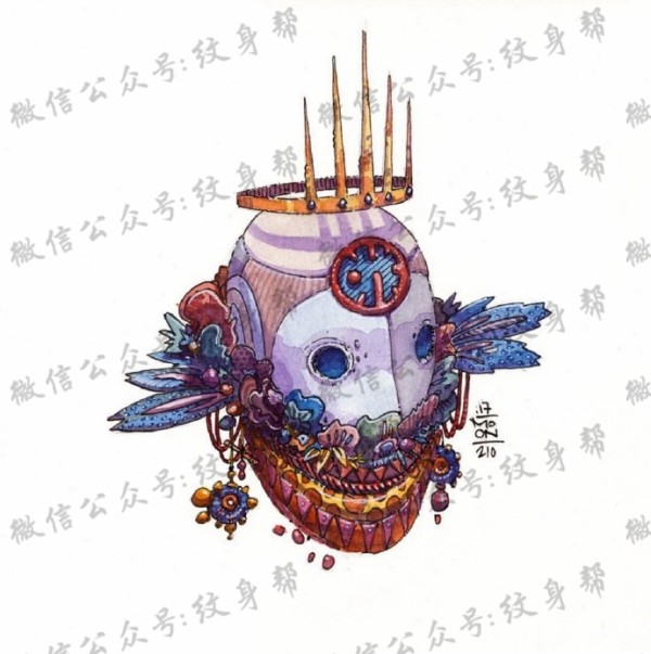 水彩插画手稿_一组23张精美水彩插画纹身手稿素材图案