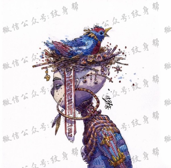 水彩插画手稿_一组23张精美水彩插画纹身手稿素材图案