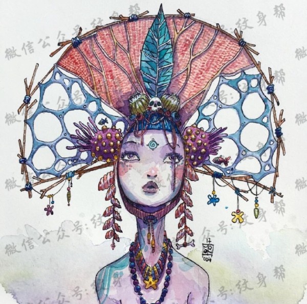 水彩插画手稿_一组23张精美水彩插画纹身手稿素材图案
