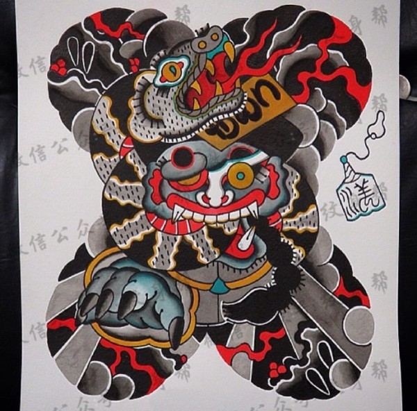 日式传统满背纹身手稿_12张传统日式大满背纹身手稿图案