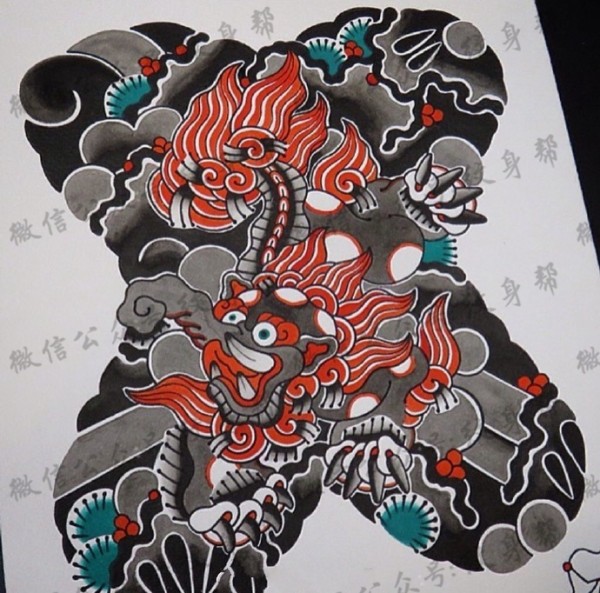 半甲唐狮手稿 传统的9款唐狮主题半甲纹身手稿图片