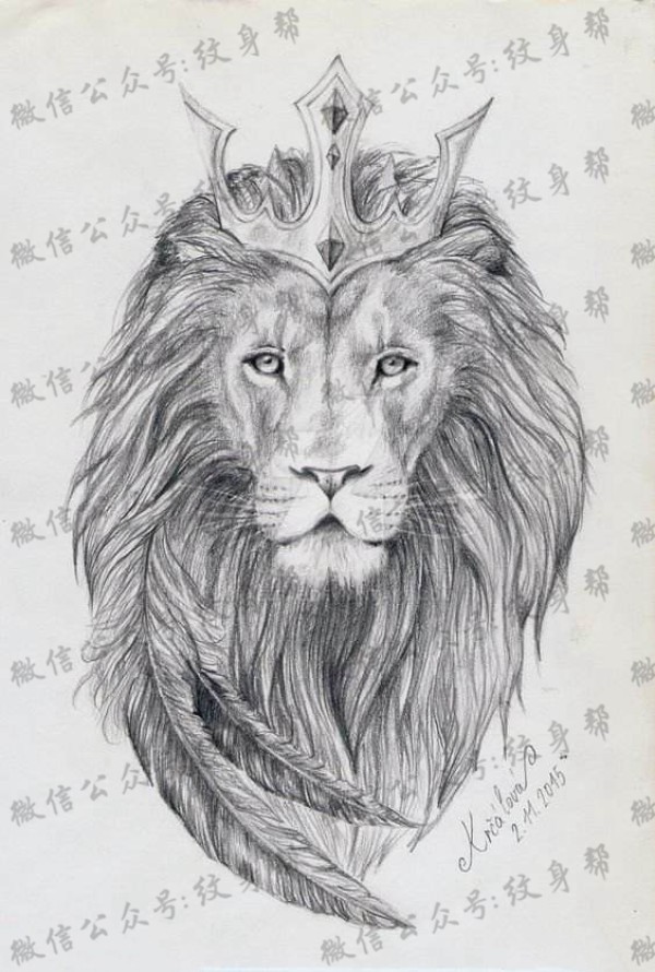 半甲唐狮手稿 传统的9款唐狮主题半甲纹身手稿图片