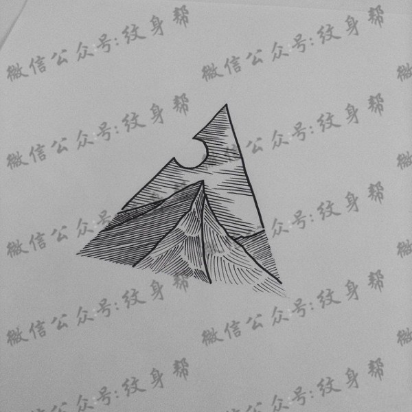 小清新简单线条山脉纹身图案手稿