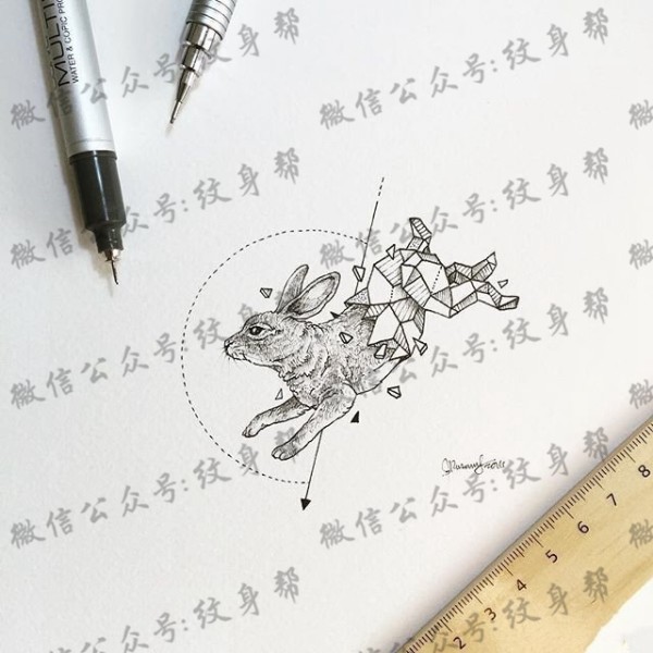 兔子点刺几何线条纹身图案手稿