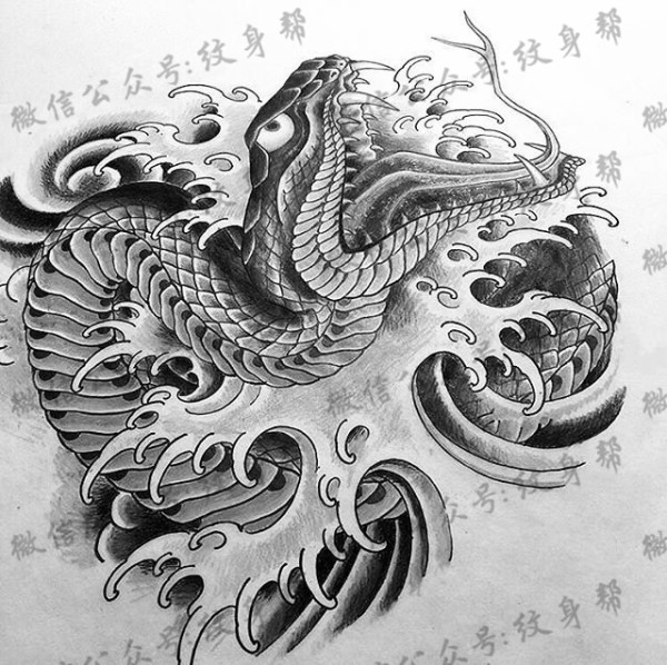 一组满背大气九龙拉棺纹身图案作品和手稿