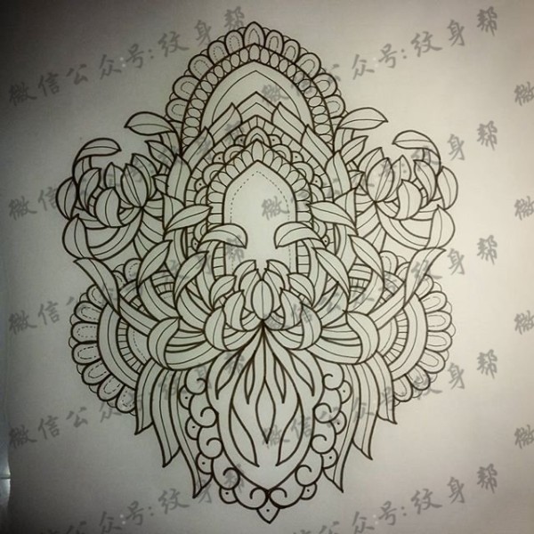 欧美梵花纹身图案手稿