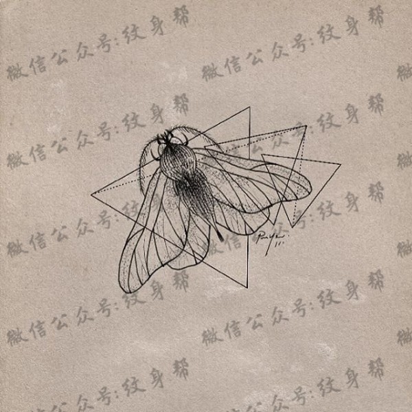 欧美蜜蜂几何线条纹身图案手稿