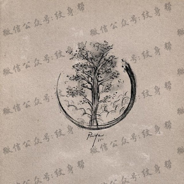 泼墨几何树木纹身图案手稿