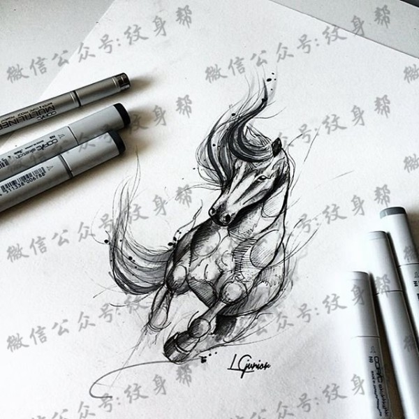 马线条纹身图案手稿