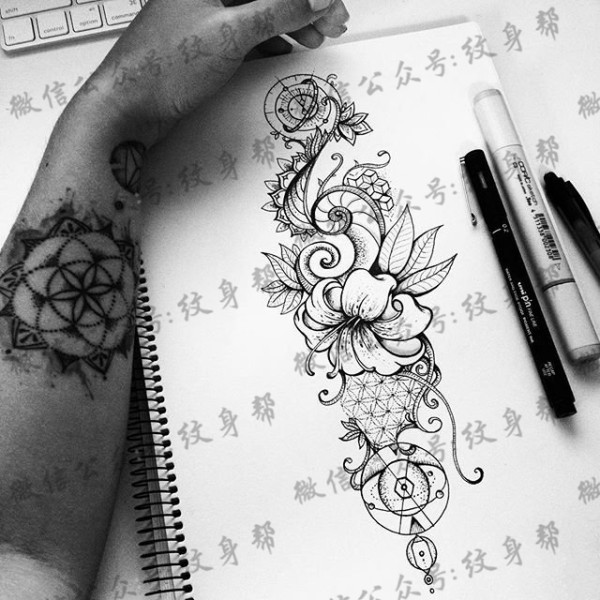 女生喜爱的简单手绘纹身图案来自于纹身师安雅