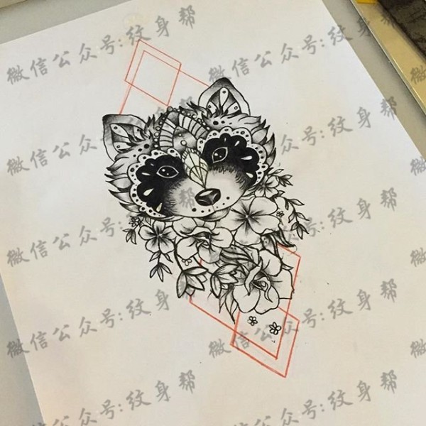 半甲唐狮手稿 传统的9款唐狮主题半甲纹身手稿图片