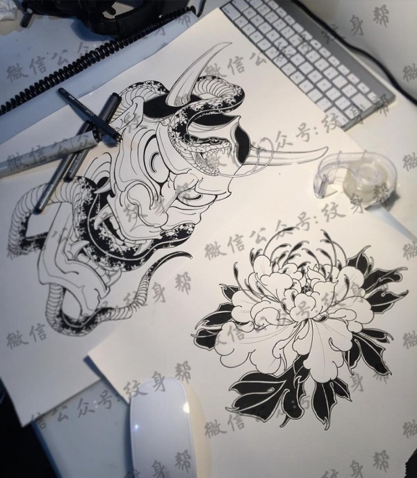 传统艺妓般若纹身图案手稿