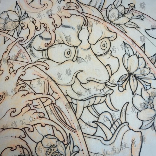 半甲唐狮手稿 传统的9款唐狮主题半甲纹身手稿图片