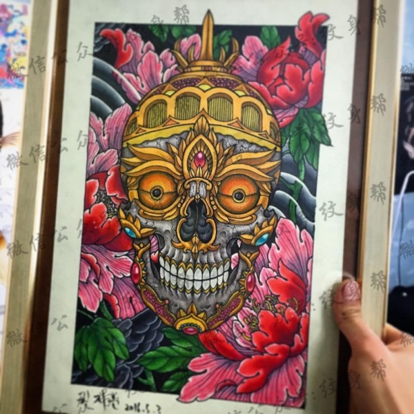 传统艺妓般若纹身图案手稿