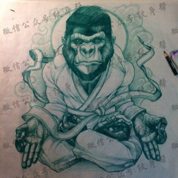 半甲唐狮手稿 传统的9款唐狮主题半甲纹身手稿图片