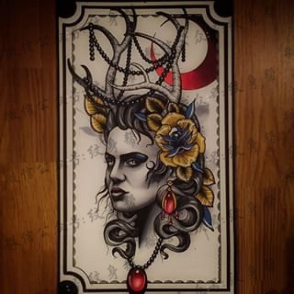 传统艺妓般若纹身图案手稿