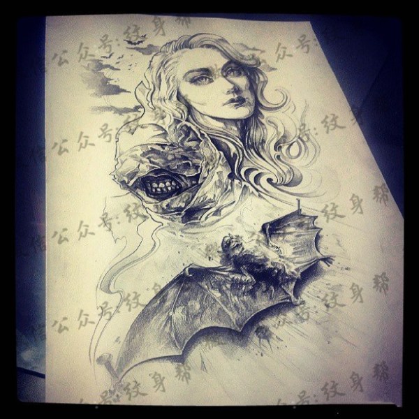 一组满背大气九龙拉棺纹身图案作品和手稿