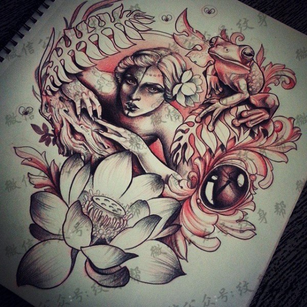 半甲唐狮手稿 传统的9款唐狮主题半甲纹身手稿图片