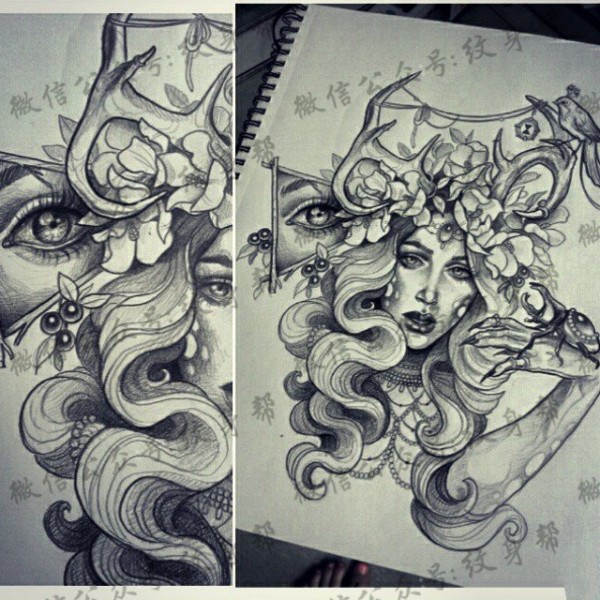 女生喜爱的简单手绘纹身图案来自于纹身师安雅