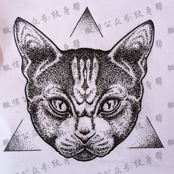 欧美school猫点刺纹身图案手稿