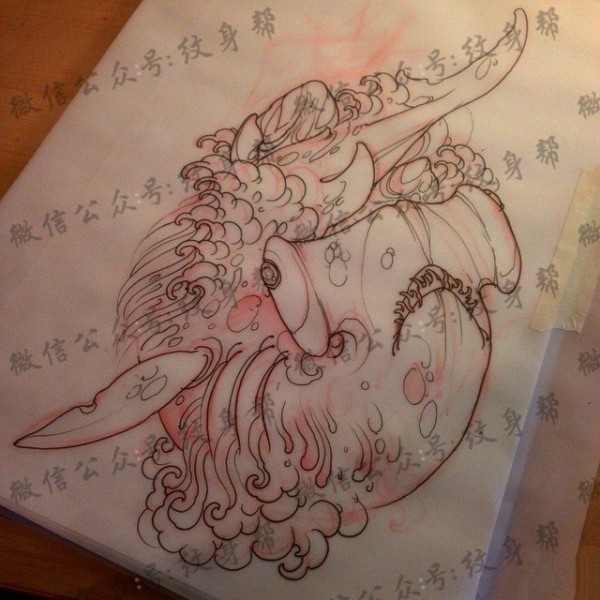 一组满背大气九龙拉棺纹身图案作品和手稿