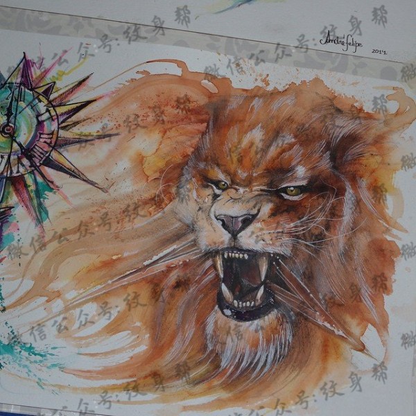 半甲唐狮手稿 传统的9款唐狮主题半甲纹身手稿图片
