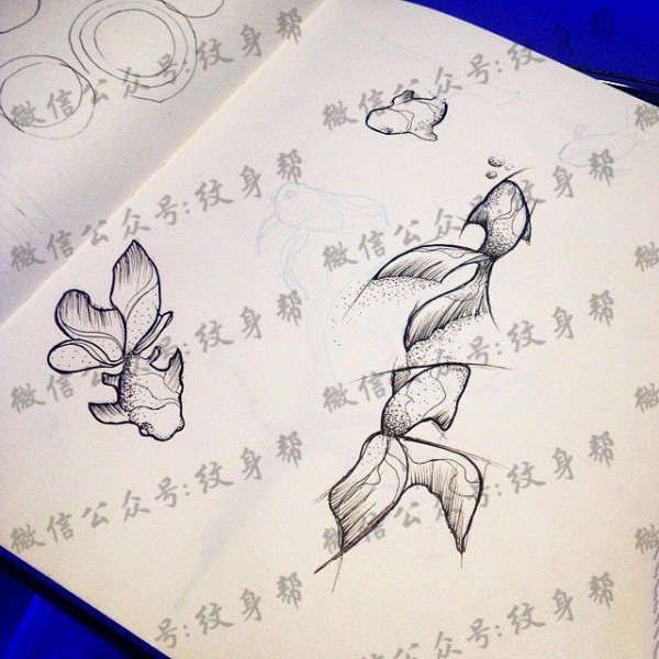 小清新金鱼纹身图案手稿