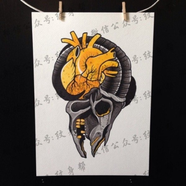 欧美羚羊心脏纹身图案手稿