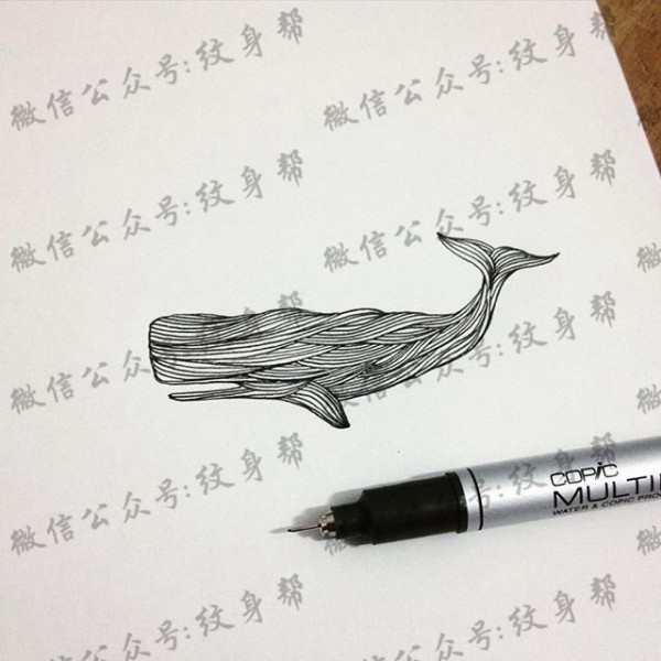 小清新线条鲸鱼纹身图案手稿