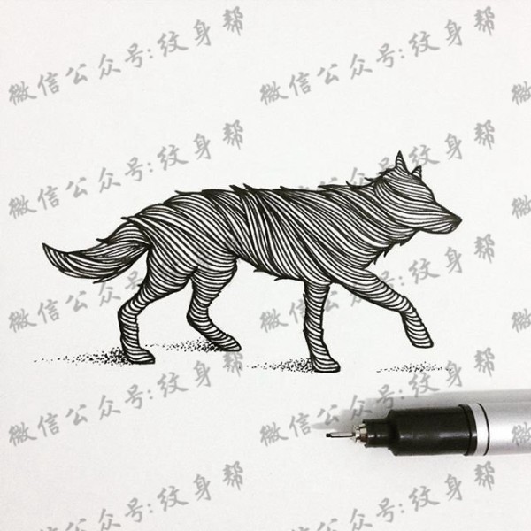 小清新线条狼纹身图案手稿