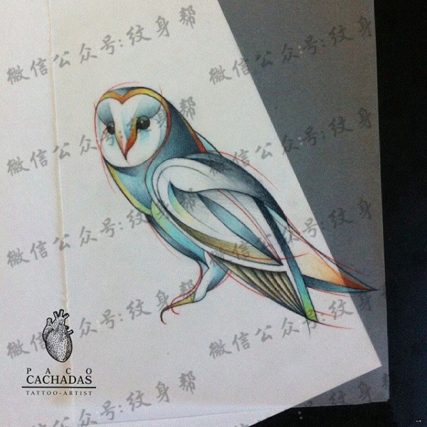 欧美猫头鹰彩色纹身图案手稿