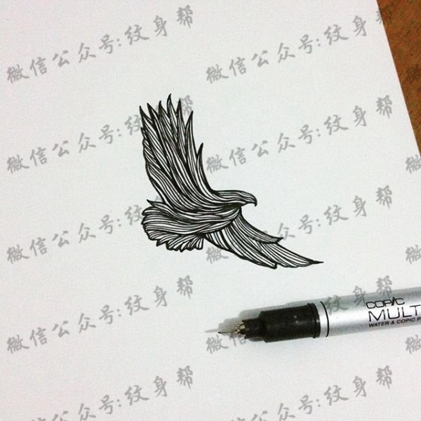 小清新线条老鹰纹身图案手稿