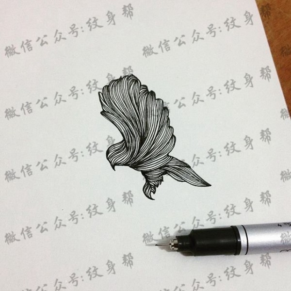 小清新鸽子线条纹身图案手稿