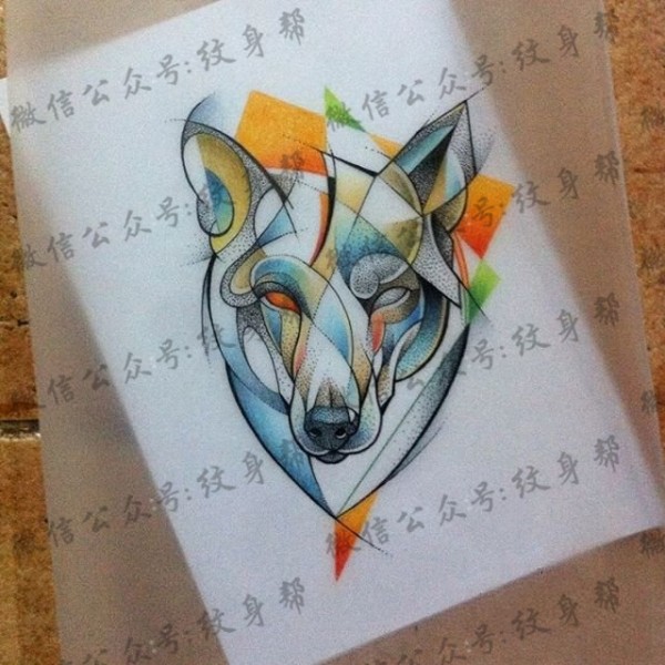 欧美彩色狐狸school纹身图案手稿