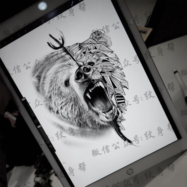 半甲唐狮手稿 传统的9款唐狮主题半甲纹身手稿图片