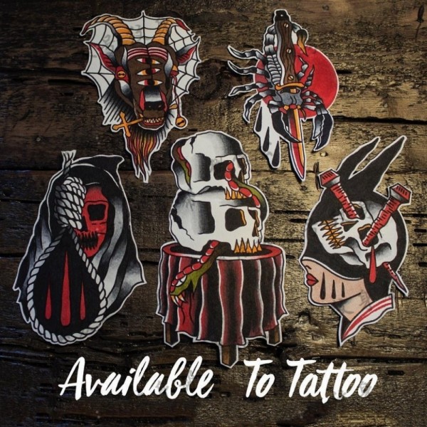 old school 死神羊头纹身图案手稿
