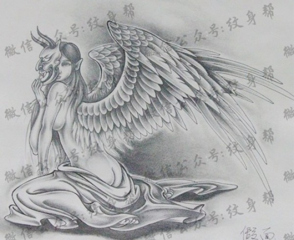堕落天使手稿_12张堕落天使相关纹身手稿图案素材