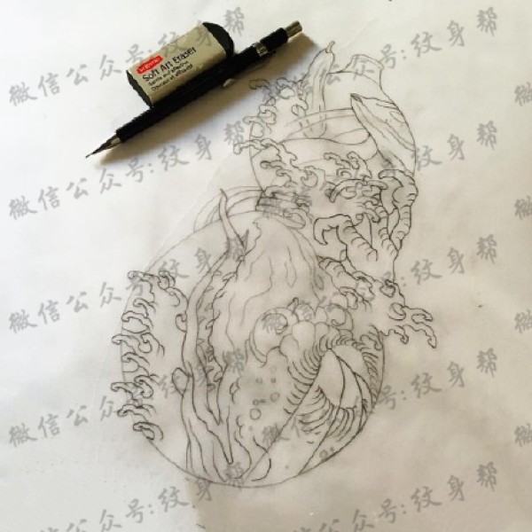 半甲唐狮手稿 传统的9款唐狮主题半甲纹身手稿图片